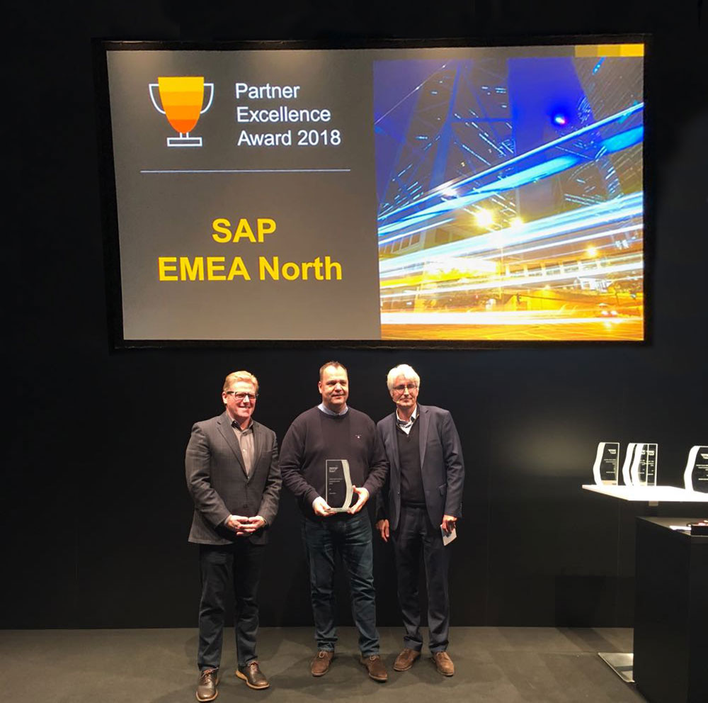 ‘s-Hertogenbosch, 8 januari 2018 – Tijdens de jaarlijkse SAP Field Kick-off in Barcelona worden de SAP Partner Excellence Awards uitgereikt aan de meest succesvolle partners in EMEA en MEE. Dit jaar was de jury wederom unaniem overtuigd om Quinso als winnaar te benoemen in de categorie innovatie. Managing Partner Hubert Wezenberg nam de award in ontvangst van Stéphane Mermet, VP General Business en Rodolpho Cardenuto, President Global Partner Operations bij SAP.